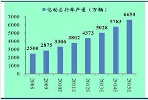 目前,我國(guó)電動(dòng)自行車的數(shù)量占全球電動(dòng)自行車總量的95%以上。2008年前,我國(guó)電動(dòng)自行車產(chǎn)量增長(zhǎng)較快,復(fù)合增長(zhǎng)率為84%,并仍將以每年15%-25%的速度增長(zhǎng),以滿足不斷增長(zhǎng)的市場(chǎng)需求。