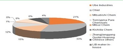 圖15 電解液領(lǐng)域全球領(lǐng)先企業(yè)及其市場(chǎng)份額