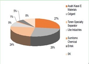 目前,全球鋰離子電池隔膜的市場(chǎng)規(guī)模約為3.5億平方米,由于技術(shù)門(mén)檻較高,世界上只有日本、美國(guó)等少數(shù)幾個(gè)國(guó)家擁有鋰電池聚合物隔膜的生產(chǎn)技術(shù)和相應(yīng)的規(guī)模化產(chǎn)業(yè)。世界隔膜的主要生產(chǎn)企業(yè)有日本旭化成工業(yè)(Asahi)、東燃化學(xué)(Tonen)、宇部興產(chǎn)UBE;韓國(guó)的SK;美國(guó)的Celgard等,合計(jì)占據(jù)了全球市場(chǎng)份額的77%。