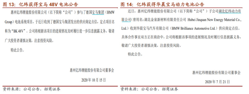 動(dòng)力以外,開辟微/輕混電池業(yè)務(wù)。2020年7月,公司公告收到華晨寶馬動(dòng)力電池定點(diǎn)函,方形三元電池正式配套第一家海外大客戶。