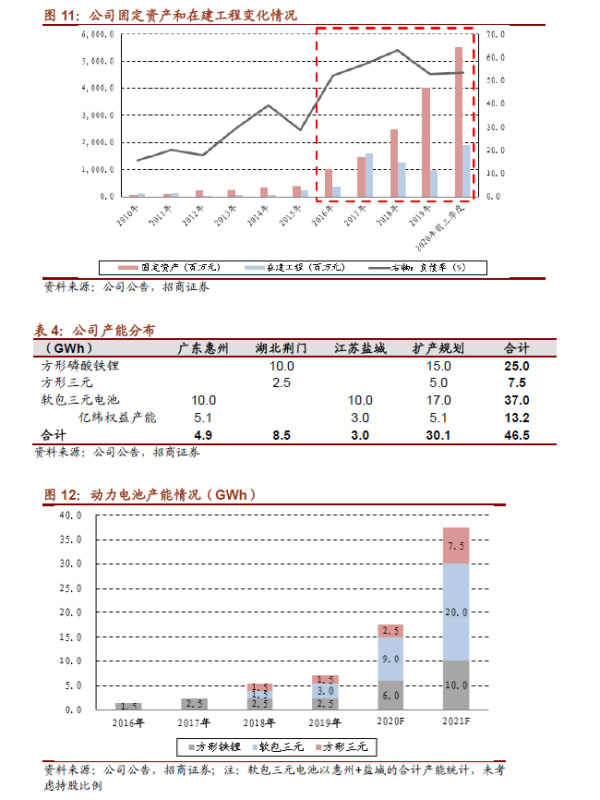 鐵鋰產(chǎn)能大擴(kuò)張。公司原有2.5GWh產(chǎn)能,2020年下半年3.5GWh新增鐵鋰產(chǎn)能已經(jīng)投運(yùn),目前公司鐵鋰產(chǎn)能已經(jīng)超過10GWh,2021年底有望超過20GWh。