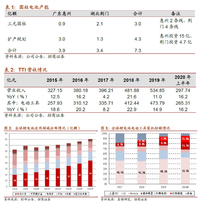 3) 圓柱三元電池產(chǎn)能有望翻倍,電動(dòng)工具行業(yè)需求旺盛;
