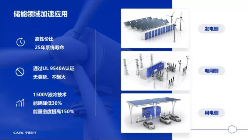 三是,儲能電池突破循環(huán)壽命瓶頸。寧德時代突破了循環(huán)壽命瓶頸,推出的12000次超長循環(huán)壽命電池可以服役25年,在全球率先通過UL安全測試,實現(xiàn)系統(tǒng)不蔓延、不起火,并采用1500V和液冷技術,能量密度和能量效率都大大提升。