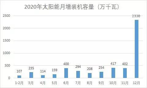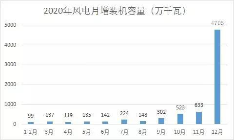 2020年底的裝機容量之所以比前面月份高出這么多,主要原因是2021年陸上風(fēng)電、光伏全面取消補貼,為確保項目收益,風(fēng)光開發(fā)商竭盡全力要在2020年底并網(wǎng)。