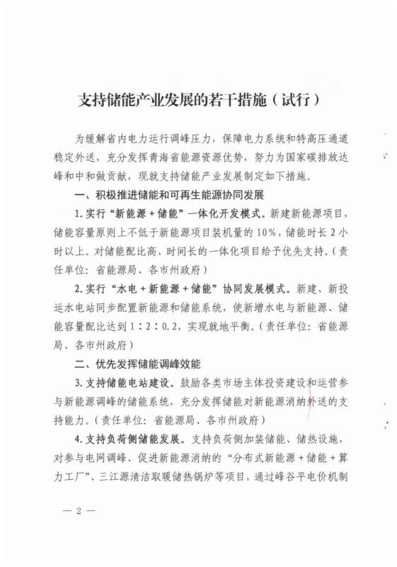 中國儲能網(wǎng)訊:1月18日,青海省發(fā)改委、科技廳、工信廳、能源局聯(lián)合下發(fā)《關(guān)于印發(fā)支持儲能產(chǎn)業(yè)發(fā)展若干措施(試行)的通知》,對"新能源+儲能” 、"水電+新能源 + 儲能”項目中自發(fā)自儲設(shè)施所發(fā)售的省內(nèi)電網(wǎng)電量,給予每千瓦時0.10元運營補貼,如果經(jīng)省工業(yè)和信息化廳認(rèn)定使用本省產(chǎn)儲能電池60%以上的項目,在上述補貼基礎(chǔ)上,再增加每千瓦時0.05元補貼。