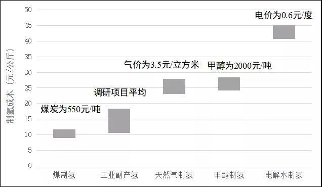 圖2:不同制氫工藝的氫氣生產(chǎn)成本對比