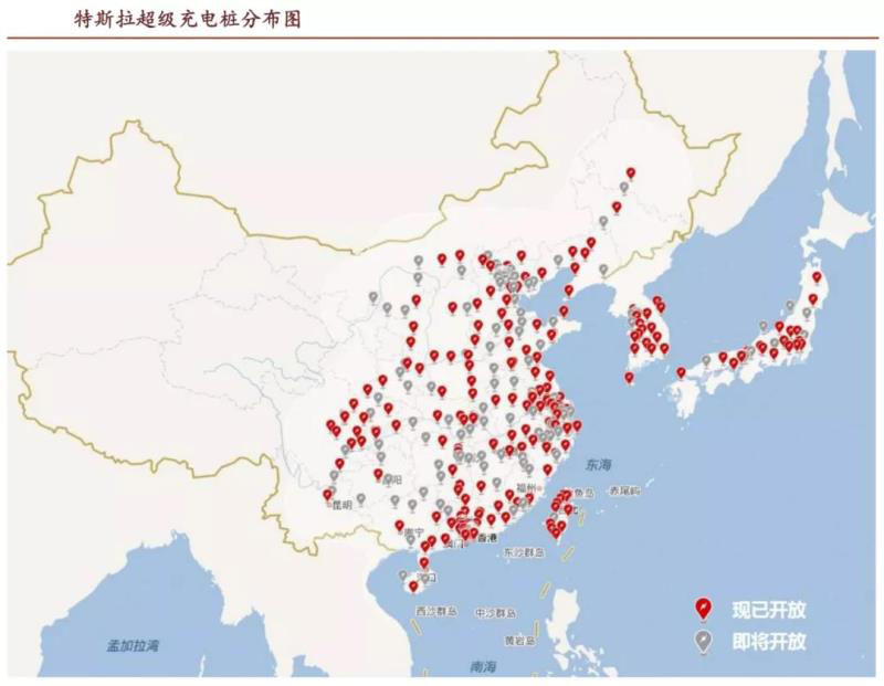 特斯拉是車企自建自營充電樁的代表。2020年11月6日,特斯拉官方發(fā)布微博表示,到今年底,將在我國建成近650個超級充電站,超級充電樁和交流充電樁總量達7000余個,覆蓋全國各主要城市及城市間連接線,京津冀、長三角、珠三角分布密度較高。