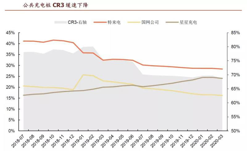 競爭上,充電樁行業(yè)集中度較高,龍頭企業(yè)引領(lǐng)大方向,但是近幾年特來電、星星充電和國家電網(wǎng)三龍頭市占率小幅下行,一方面是公司不再盲目投建,放慢了速度,一方面也是因為更具競爭力的新玩家的加入。
