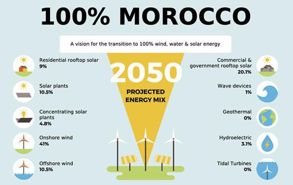 摩洛哥計(jì)劃到2030年實(shí)現(xiàn)可再生能源滿足50%電力需求,到2050年要實(shí)現(xiàn)100%滿足電力需求。