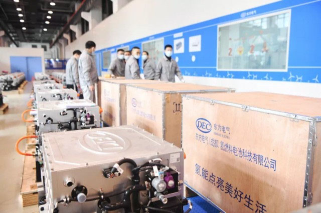 東方電氣于2010年啟動了燃料電池研發(fā)工作,經過長期扎實的技術積累,在2017年自主研制的第一代氫燃料電池發(fā)動機正式裝車,2018年實現(xiàn)10臺公交車小批量示范,2019年第二代發(fā)動機實現(xiàn)批量應用,點亮了四川省、成都市氫能產業(yè)發(fā)展的星星之火。當前,先期示范的100臺氫燃料電池公交車累計運營里程超過620萬公里,最低氫耗不到4公斤,處于國內領先水平。