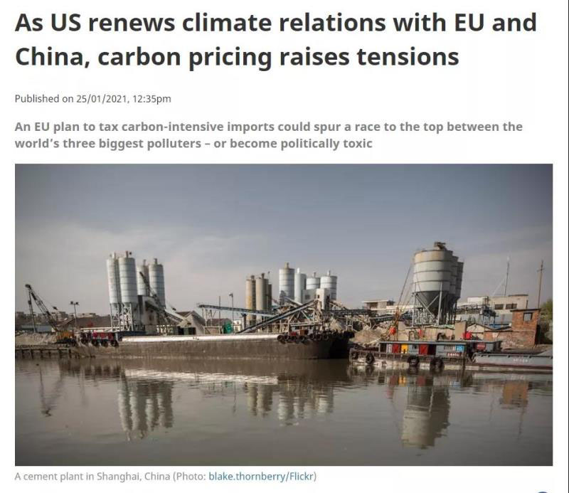 歐盟已將其綠色協(xié)議(旨在促進(jìn)綠色增長和創(chuàng)造就業(yè)機(jī)會(huì),同時(shí)削減整個(gè)經(jīng)濟(jì)體的排放)列為其首要政治任務(wù)。為了實(shí)現(xiàn)這一目標(biāo),歐盟正計(jì)劃制定"碳邊界調(diào)節(jié)機(jī)制",以防止歐洲企業(yè)受到來自環(huán)境標(biāo)準(zhǔn)較低、沒有碳排放價(jià)格的國家的競爭的削弱。歐盟委員會(huì)預(yù)計(jì)將在6月份公布其具體方案。雖然拜登傾向于支持在美國邊境向未能履行氣候和環(huán)境義務(wù)的國家收取類似的“碳調(diào)整費(fèi)”,但他在國內(nèi)相關(guān)政策上還有很多準(zhǔn)備工作要做。中國政府已經(jīng)對(duì)“氣候保護(hù)主義”進(jìn)行了批評(píng),但在實(shí)際操作中,中國已經(jīng)建立了一個(gè)碳定價(jià)的體制框架。中國最近啟動(dòng)了一個(gè)全國性的碳排放市場,要求發(fā)電廠如果超過碳排放強(qiáng)度目標(biāo),就必須購買污染許可證。而美國在聯(lián)邦一級(jí)還沒有這樣的計(jì)劃。