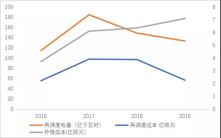 此外,系統(tǒng)平衡成本也在上漲。2016年德國的再調(diào)度措施約耗資2.226億歐元,到2018年再調(diào)度成本已達(dá)到3.88億歐元,雖然2019年較2018年減少了,但是系統(tǒng)總補(bǔ)償成本卻持續(xù)增加,從2016年的3.7億歐元增長到2019年的7.09億歐元。此外,電網(wǎng)還有一些額外的成本來自傳輸系統(tǒng)的數(shù)字化和地下線路的增加。