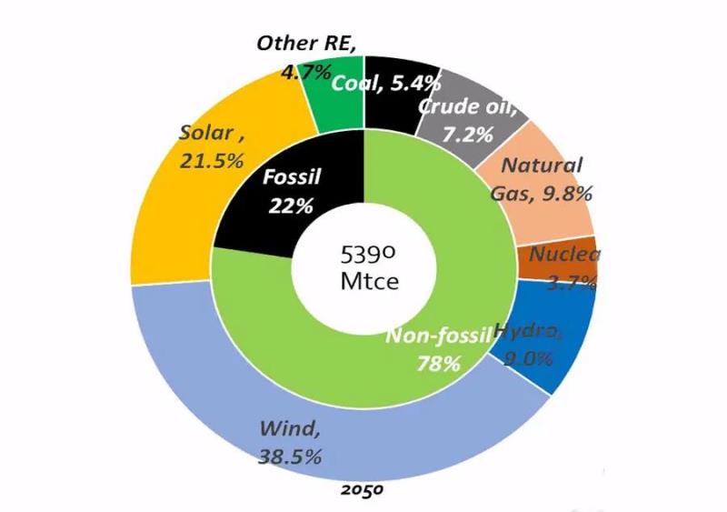 到2050年,中國風(fēng)電將占到能源消費的38.5%,光伏占到21.5%,排在之后的就是天然氣占9.8%,水電占到9%。而能源轉(zhuǎn)型帶來的成本更多是近中期成本,其中包括可再生能源投資、電網(wǎng)靈活性改造等。國家發(fā)改委能源研究所可再生能源中心主任趙勇強說:“長期來說,電力系統(tǒng)的成本可以下降約20%,而且成本結(jié)構(gòu)將發(fā)生很大的變化?!?