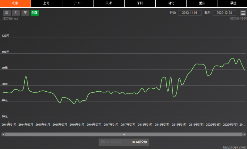 圖 3: 北京市2014-2020年碳排放交易數(shù)據(jù)