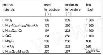 對(duì)正極材料熱穩(wěn)定性分析可得出以下幾點(diǎn)結(jié)論: