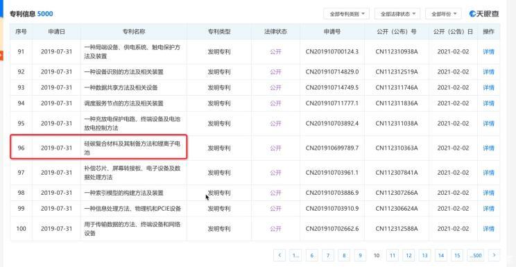我們從天眼查App上查詢到,在近日,華為技術(shù)有限公司公開“硅碳復(fù)合材料及其制備方法和鋰離子電池”發(fā)明專利,公開號為CN112310363A。