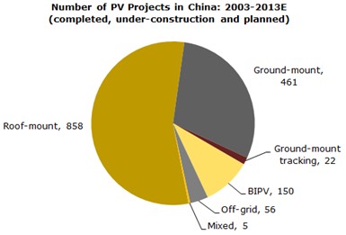 中國不同光伏應用領(lǐng)域的光伏項目數(shù)量