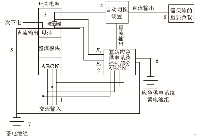 目前常見的充電方法為恒流充電、恒壓充電、恒流恒壓充電和脈沖充電4種。浮充電是一種特殊的脈沖充電方式。在電池充電的末期以一種持續(xù)的、長時間的模式,用小電流來緩慢增加電池的充電深度,或者補償電池在長期靜置下的自放電損失,使電池處于電量飽滿狀態(tài)。浮充電也是一種復雜的充電方式,需要通過精確的控制策略來實現(xiàn),從而不斷對儲能電池電量進行補充。在儲能電池的管理系統(tǒng)中,主要包括控制系統(tǒng)、切換裝置和后備電池組等,系統(tǒng)模型如圖1所示。