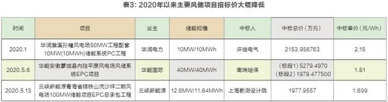 2020年初以來,新能源配儲能項目開標價格逐漸走低,從年初的2.65元/Wh下降至1.65元/Wh左右。與此同時,無視項目成本一味低價競標的現(xiàn)象在儲能招投標中愈演愈烈。5月中旬,三峽新能源青海風儲項目開標,1.699元/Wh的EPC價格刷新了行業(yè)底線。業(yè)界普遍認為,該價格已經(jīng)低于儲能成本價。