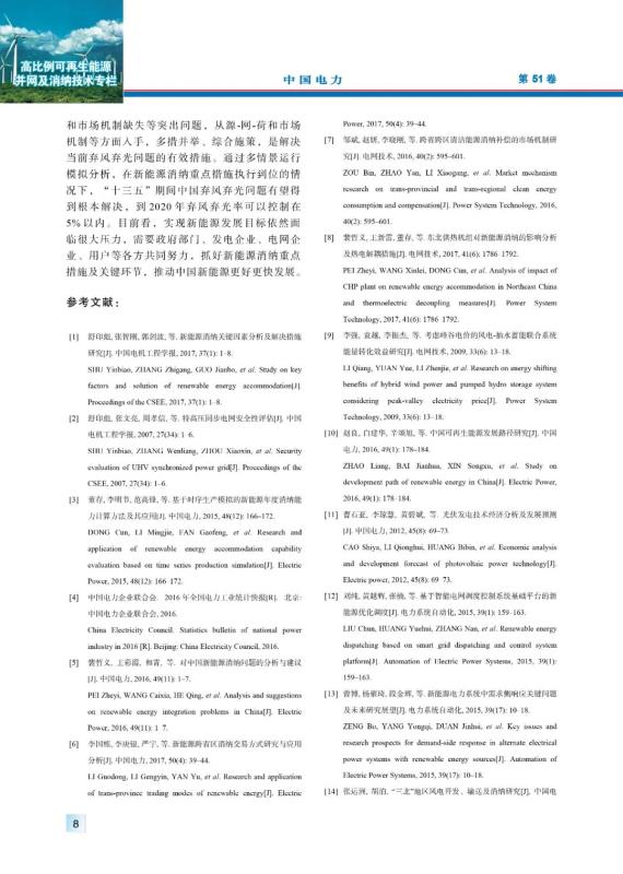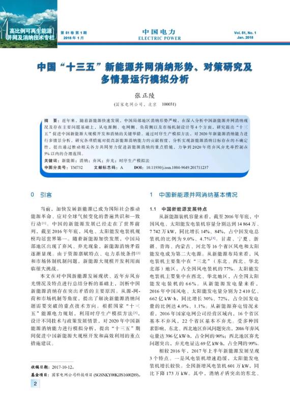 ZHANG Zhengling. Research on situation and countermeasures of new energy integration in the 13th five-year plan period and its multi-scenario simulation[J]. Electric Power, 2018, 51(1): 2-9.