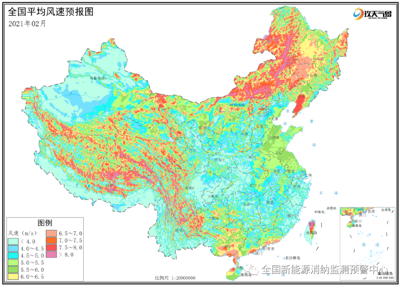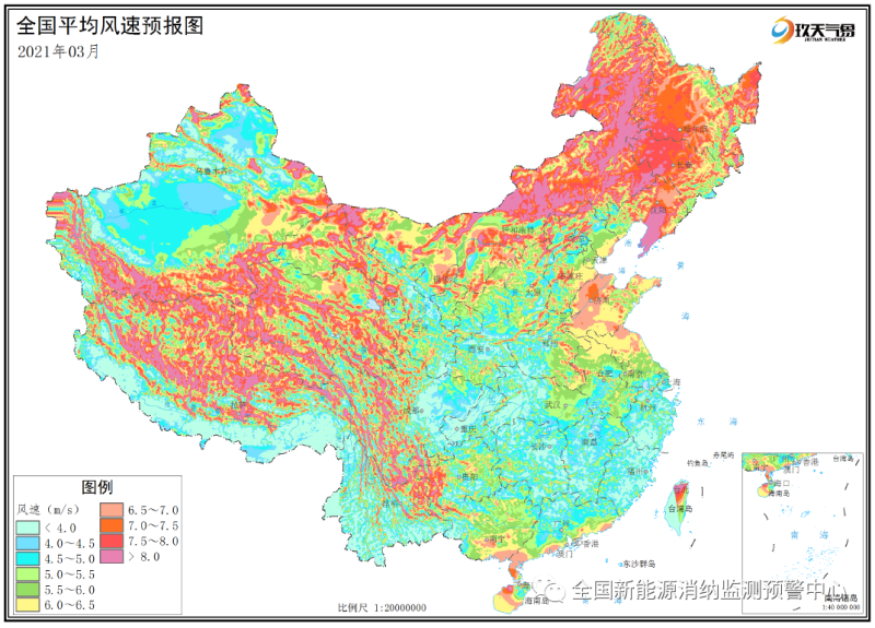根據(jù)中國氣象局預(yù)測,風(fēng)能資源方面,2021年一季度隨著月份遞增,全國大部地區(qū)風(fēng)速呈增大趨勢,風(fēng)速在3.6m/s~7.2m/s之間。風(fēng)速低值區(qū)一般位于新疆西部和中部、西藏南部、西南地區(qū)東北部和南部等地,平均風(fēng)速一般低于4.0m/s;風(fēng)速高值區(qū)主要位于東北、西北東部的部分地區(qū)、青藏高原、川西高原、云貴高原等地,平均風(fēng)速達到6.0m/s以上。