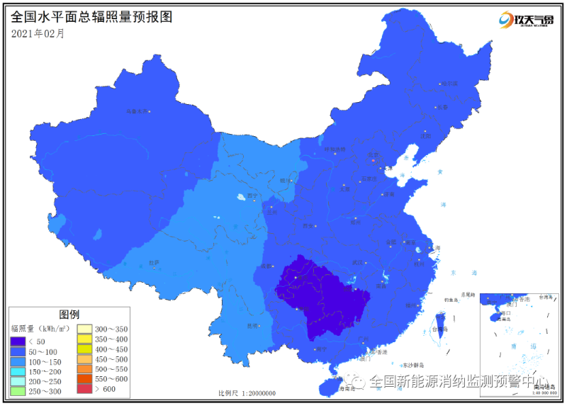 附圖4 全國2021年2月水平面總輻照量預(yù)報圖