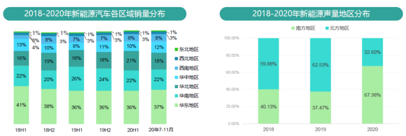 圖 | 按區(qū)域看新能源汽車銷量與聲量(數(shù)據(jù)來源:威爾森監(jiān)測、新浪汽車大數(shù)據(jù))