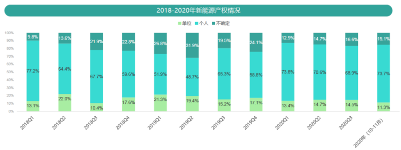 圖 | 2018-2020年新能源產(chǎn)權(quán)情況(數(shù)據(jù)來源:威爾森監(jiān)測)