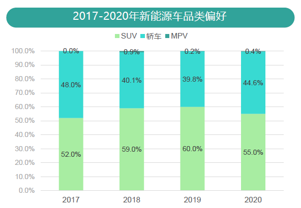 圖 | 2017-2020年新能源車品類偏好(數(shù)據(jù)來源:新浪汽車大數(shù)據(jù))