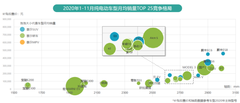 圖 | 2020年1-11月純電動(dòng)車型月均銷量Top25(數(shù)據(jù)來源:威爾森檢測)