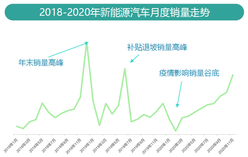 圖 | 2018-2020年新能源汽車月度銷量走勢(數(shù)據(jù)來源:威爾森監(jiān)測)
