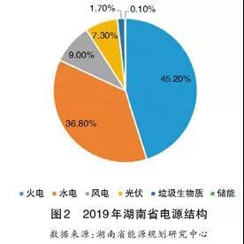 根據(jù)湖南省能源規(guī)劃研究中心發(fā)布的《湖南省能源發(fā)展報告2019》數(shù)據(jù)顯示,截至2019年,湖南省累計發(fā)電裝機容量為4734萬千瓦,其中火電裝機容量為2140萬千瓦,占比45.2%,低于全國約60%的平均水平。但是湖南省自身電煤資源嚴(yán)重缺乏并且近年來湖南省政府連續(xù)關(guān)閉退出落后小煤礦,僅2019年分三個批次關(guān)閉煤礦49處、退出產(chǎn)能424萬噸/年,煤礦數(shù)量由2017年的284處降到2019年的128處,導(dǎo)致湖南省電煤超過80%需要靠外省輸入。而電煤從外省輸入又受到電煤供應(yīng)地區(qū)、電煤價格、運力安排等多重因素的影響,無形中增加了湖南省內(nèi)火力發(fā)電企業(yè)的經(jīng)營成本,同時也給湖南省電力安全穩(wěn)定供應(yīng)帶來了極大的風(fēng)險。其次,湖南水能資源非常豐富,水電資源已開發(fā)95%以上。截至2019年底,湖南省水電裝機容量達(dá)到1744萬千瓦,占比36.8%,水電裝機占比高出全國平均水平一倍以上。雖然湖南省水電裝機占比很大,但大部分水電機組調(diào)節(jié)能力差或缺乏調(diào)節(jié)能力,受季節(jié)性尤其是夏季持續(xù)高溫晴熱天氣和冬季枯水期的影響較大。因此,占全省發(fā)電總裝機容量近37%的水電裝機,實際發(fā)電量僅占全省總用電量的28%。正是由于湖南水電裝機占比較大且調(diào)節(jié)能力較差的特點,相當(dāng)于湖南需要投資遠(yuǎn)高于正常情況的裝機容量來滿足本省電力需求,從而使湖南省整體電價高于全國平均水平。第三,近年來湖南省風(fēng)電、光伏和生物質(zhì)等可再生能源發(fā)展迅速,截至2019年底,湖南省可再生能源發(fā)電裝機容量達(dá)到850萬千瓦,占總裝機容量的18%,其中,風(fēng)電裝機427萬千瓦,占總裝機的9.0%;光伏裝機343.86萬千瓦,占總裝機的7.3%;垃圾生物質(zhì)發(fā)電裝機79萬千瓦,占總裝機的1.7%。但是相對火電和水電而言,湖南省內(nèi)可再生能源占比不高且自身具有強烈的間歇性和波動性,難以為湖南省提供連續(xù)可靠的電力保障(見圖2)。
