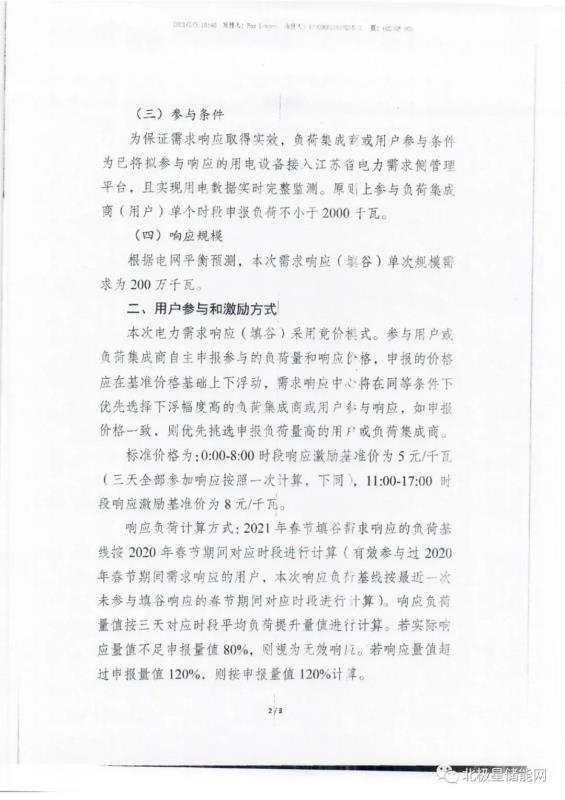文件稱根據(jù)電網(wǎng)平衡預(yù)測,本次需求響應(yīng)(填谷)單次規(guī)模需求為200萬千瓦,參與響應(yīng)企業(yè)均可以得到5元-8元/千瓦(基準(zhǔn)價(jià)格)的激勵(lì)補(bǔ)償。