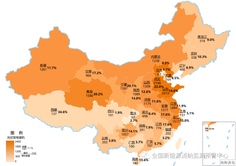 截至12月底各地區(qū)累計光伏發(fā)電裝機(萬千瓦)及占本地區(qū)總裝機比重