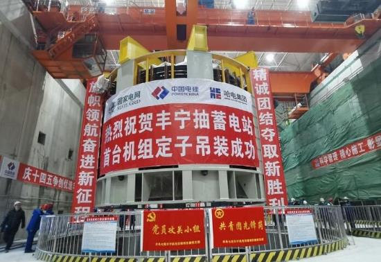 中國儲能網(wǎng)訊:2月8日,水電七局承擔安裝任務的世界總裝機容量最大的河北豐寧抽水蓄能電站首臺(1號)定子成功吊裝,為今年底實現(xiàn)首臺機投產(chǎn)發(fā)電目標奠定堅實基礎。