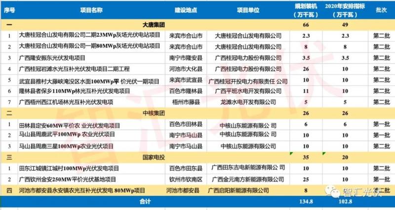 2020年11月,廣西能源局發(fā)布《關(guān)于印發(fā)2020年平價(jià)風(fēng)電和第一批平價(jià)光伏項(xiàng)目建設(shè)方案》的通知,公布了廣西2020年平價(jià)風(fēng)電和第一批平價(jià)光伏項(xiàng)目建設(shè)方案,其中: