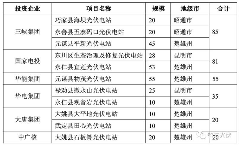 表:云南3GW光伏項(xiàng)目具體分配情況(單位:萬(wàn)kW)