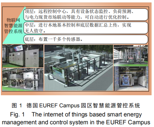 基于物聯(lián)網(wǎng)的智慧能源管控技術(shù)正在全球范圍內(nèi)快速發(fā)展,如德國在 EUREFCampus 園區(qū)能源站項目中構(gòu)建了具有“底層-中層-頂層”3 層架 構(gòu)的物聯(lián)網(wǎng)智慧能源管控系統(tǒng)(見圖 1)。從技術(shù)層面看,智能量測、智能分析是實現(xiàn)智慧能源管控的核心技術(shù)。智能量測技術(shù)迫切需要在智能傳感器、信息接口、信息通信等方面進行技術(shù)攻 關(guān),解決多元數(shù)據(jù)的實時精確采集、不同傳感設(shè)備間通信以及信息實時高效傳輸?shù)碾y題,提供高效、安全、泛在的信息量測能力。智能分析技術(shù)迫切需要在多能耦合轉(zhuǎn)換關(guān)系分析以及用戶的用能和交易行為分析等方面進行攻關(guān),解決海量數(shù)據(jù)實時分析挖掘的難題。智慧能源管控技術(shù)是能源流和信息流高度融合發(fā)展的重要體現(xiàn),推動綜合能源服務(wù)業(yè)務(wù)以更加綠色高效的方式滿足用戶定制化、多樣化需求,將成為未來綜合能源服務(wù)的核心業(yè)務(wù)之一。