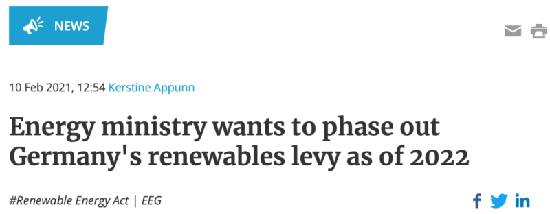 中國儲能網(wǎng)訊:德國政府計(jì)劃逐步取消電費(fèi)中的可再生能源附加費(fèi),取而代之的是從國家預(yù)算中獲得可再生能源發(fā)電的資金。聯(lián)邦能源部長阿爾特邁爾曾表示,可再生能源附加費(fèi)(又稱EEG稅)應(yīng)在未來5年逐步放棄,9月大選后的未來政府應(yīng)就此作出決定。目前德國能源部正在研究一項(xiàng)提案,在中期內(nèi)完全廢除可再生能源附加稅,并通過政府預(yù)算為其提供資金。根據(jù)這項(xiàng)提案,未來所有新的可再生能源項(xiàng)目都可以通過國家預(yù)算獲得資金,這對于長期穩(wěn)定電價(jià)和在推動電動汽車和氫氣等其他低碳技術(shù)方面取得進(jìn)展是必要的。