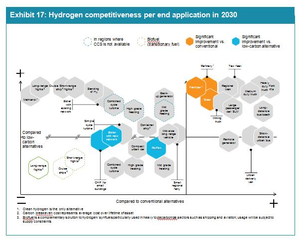 氫能在22種終端應用中具有競爭力