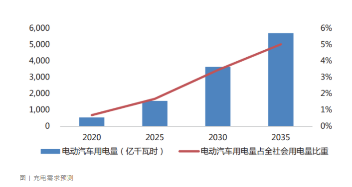 在此能源結(jié)構(gòu)與供給情況背景下,新能源汽車的發(fā)展需求得到了充分保障。根據(jù)社會不同車型電動化率假設條件測算,2035年純電動汽車用電量僅占全社會用電量的5%,比例十分有限。但是無序充電對電力系統(tǒng)的負荷沖擊大。此外,氫燃料電池汽車的氫能消費占氫能總供給的比例也有限。