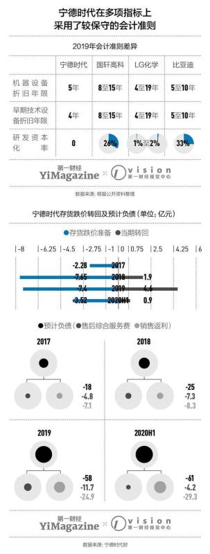 根據(jù)中信證券的核算,通過縮短折舊年限、研發(fā)成本100%費用化、提前計提存貨跌價,以及計提大量的電池質(zhì)保費用、兌現(xiàn)銷售返利等會計手段,寧德時代在2019年將最多可達42億元的凈利潤“處理”成了運營成本。