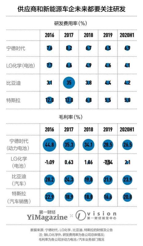 作為電動車產(chǎn)業(yè)鏈的中游環(huán)節(jié),如果專注于動力電池研究,就意味著進入了一個高研發(fā)投入、長回報周期的“風(fēng)險行業(yè)”。以行業(yè)龍頭LG化學(xué)為例,集團資源和外部基金可以支撐起公司每年相當(dāng)于20億元至30億元人民幣的研發(fā)投入,卻無法保證公司最基礎(chǔ)的毛利率始終為正。