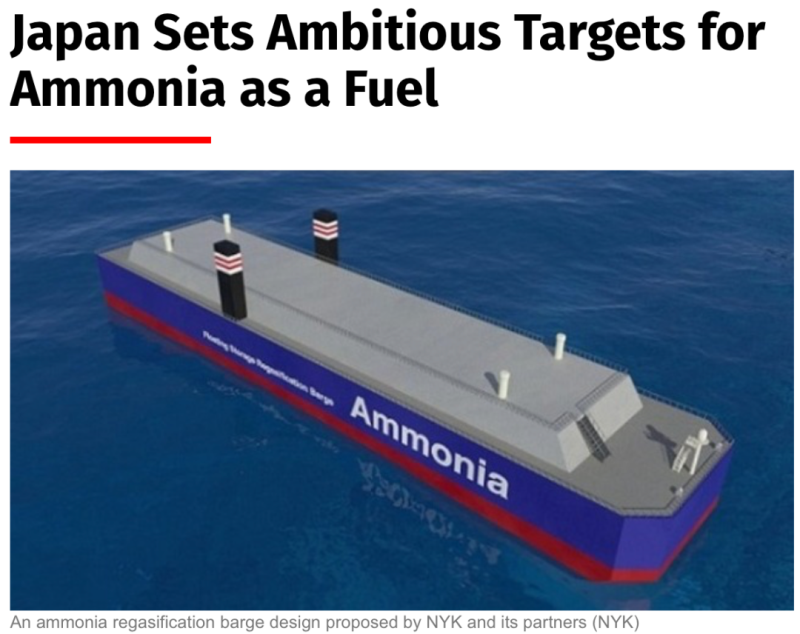 另一種選擇通過碳捕獲生產(chǎn)“藍色氨”。日本經(jīng)濟產(chǎn)業(yè)省和阿布扎比國家石油公司(ADNOC)簽署了一份諒解備忘錄,就如何將天然氣用于藍氨生產(chǎn)進行示范,并共同努力擴大市場。