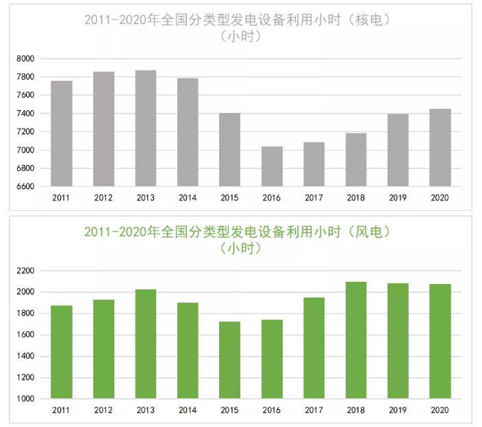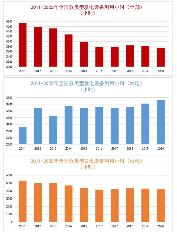以下是2011-2020年全國各類型發(fā)電設(shè)備利用小時情況。
