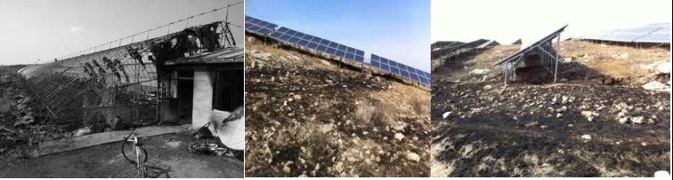 正如大家常見的,秋末冬初,山地電站組件下方布滿枯草,山火引發(fā)的損失難以估量,因此電站對(duì)防火的要求必然更高;農(nóng)光電站、屋頂光伏等場(chǎng)景光伏組件通常布置在大棚或建筑物上方,且與人員的接觸更加緊密,線纜或逆變器短路引發(fā)的火災(zāi),將對(duì)人身財(cái)產(chǎn)安全產(chǎn)生極大的威脅。