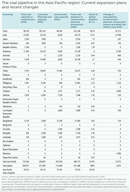 根據(jù)亞太經(jīng)濟(jì)社會(huì)理事會(huì)發(fā)表“亞太地區(qū)退煤報(bào)告”,目前亞太地區(qū)計(jì)劃和宣布興建的燃煤電廠占全球擬建燃煤發(fā)電廠的94%,總裝機(jī)約522吉瓦。