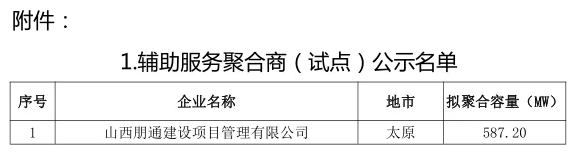 關(guān)于擬參與山西獨(dú)立儲能和用戶可控負(fù)荷參與電力調(diào)峰市場交易企業(yè)(試點(diǎn))公示
