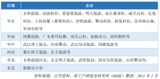 中國(guó)氫燃料電池膜電極企業(yè)區(qū)域分布