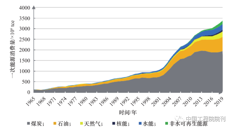圖 4 中國(guó)一次能源消費(fèi)量歷史變化曲線